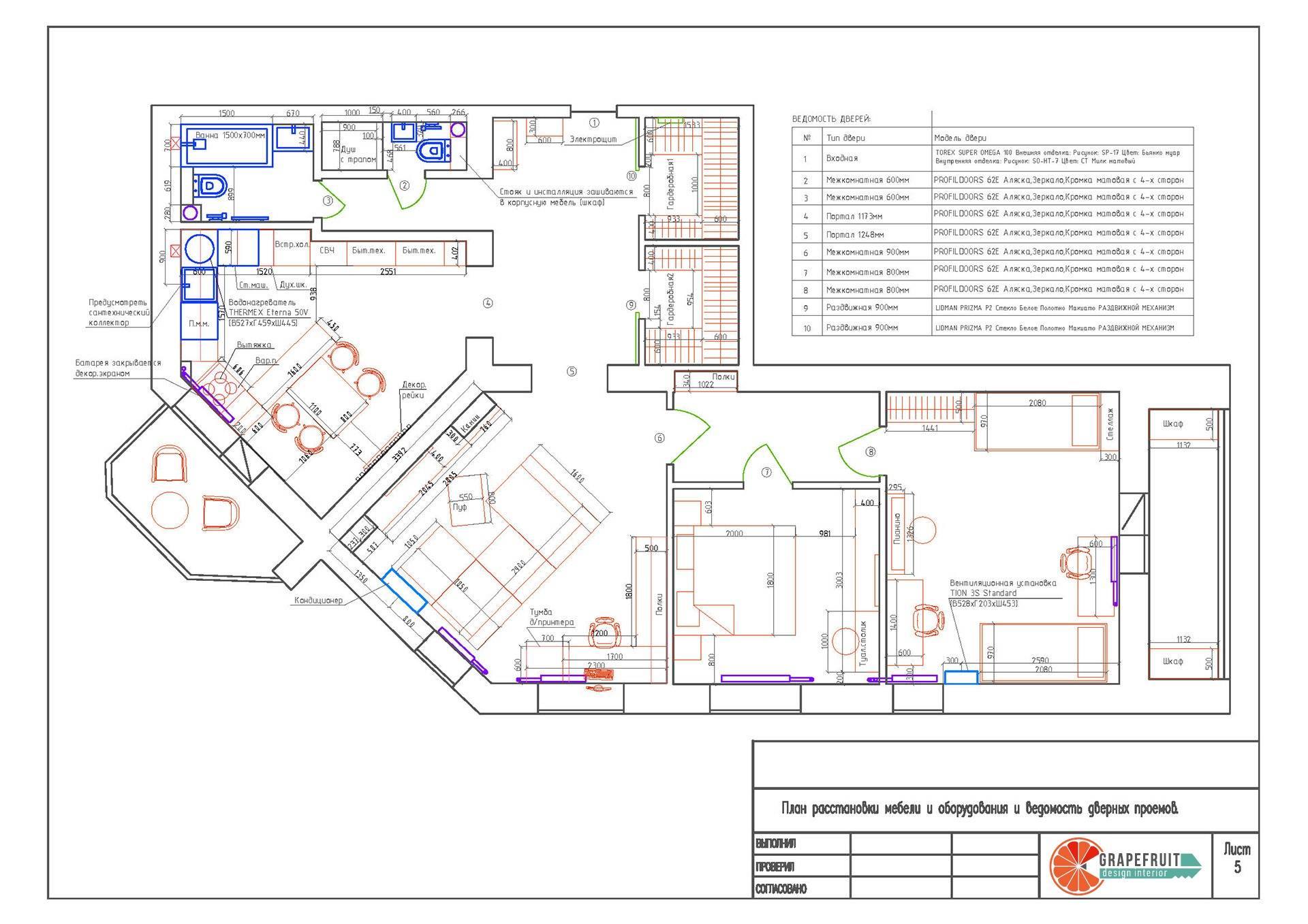 - План расстановки мебели и оборудования и ведомость дверных проемов