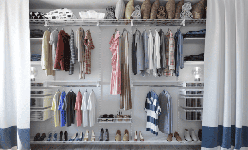 Полки и стеллажи подходят для содержания вещей в последовательности, однако требует значительных затрат.