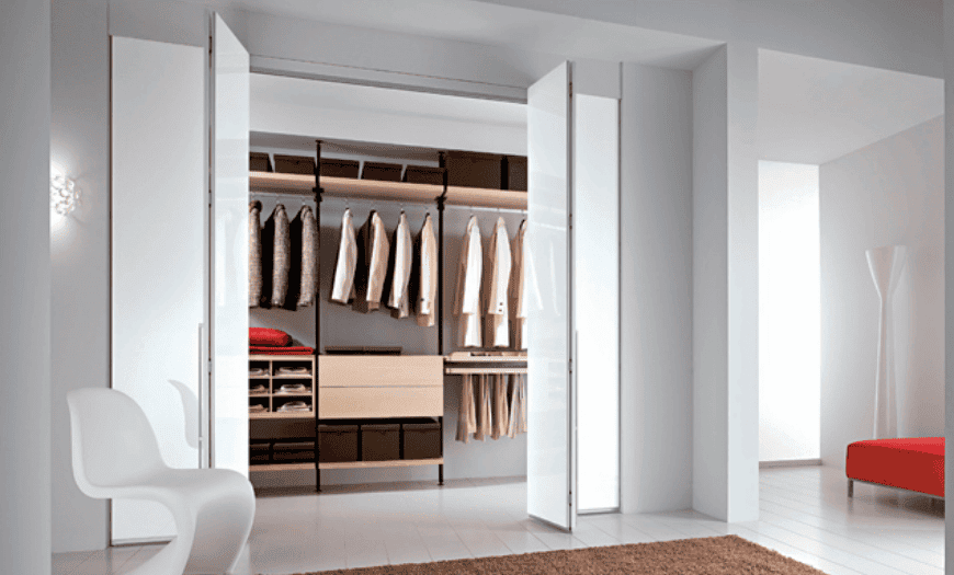 Еще один недостаток – плотно закрыть двери гардеробной не получится, что немаловажно, если в квартире есть дети или домашние животные