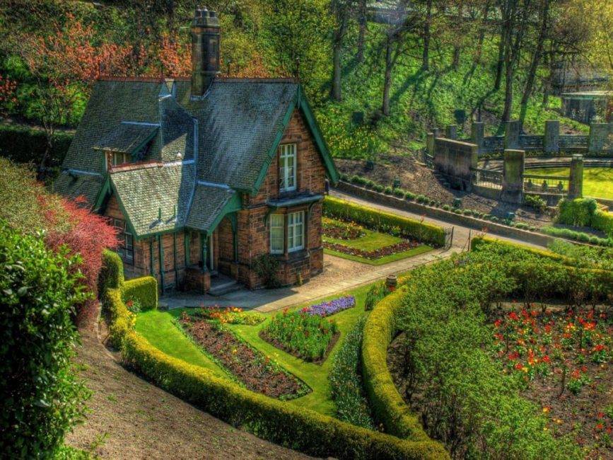 В отличие от французских, английские не требуют строгой симметрии. Основной упор в них делается на газонах, с помощью которых украшается участок. На фоне засеянной травы посадки даже обычных огородных растений выглядят декоративными культурами. По сути, это смесь огорода и цветника.