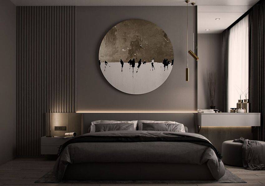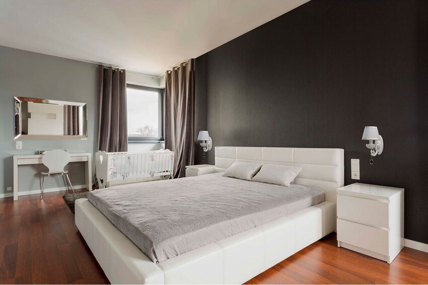 К примеру, выделить изголовье кровати или несколько отдельных участков стены. Но в целом не рекомендуется полностью окрашивать стены комнат в тёмный цвет, так как они могут давить на ваше психологическое состояние.