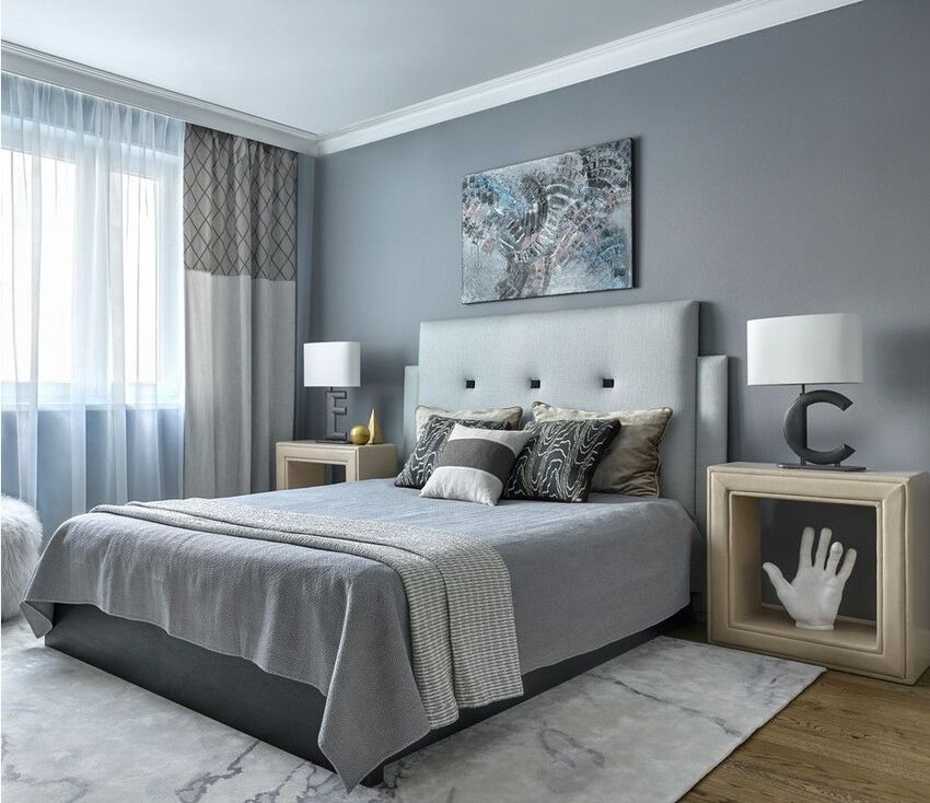 В отличие от той же гостиной, спальня служит для полноценного отдыха. Поэтому в ней уместна спокойная палитра. Лучше всего подойдут такие цвета: