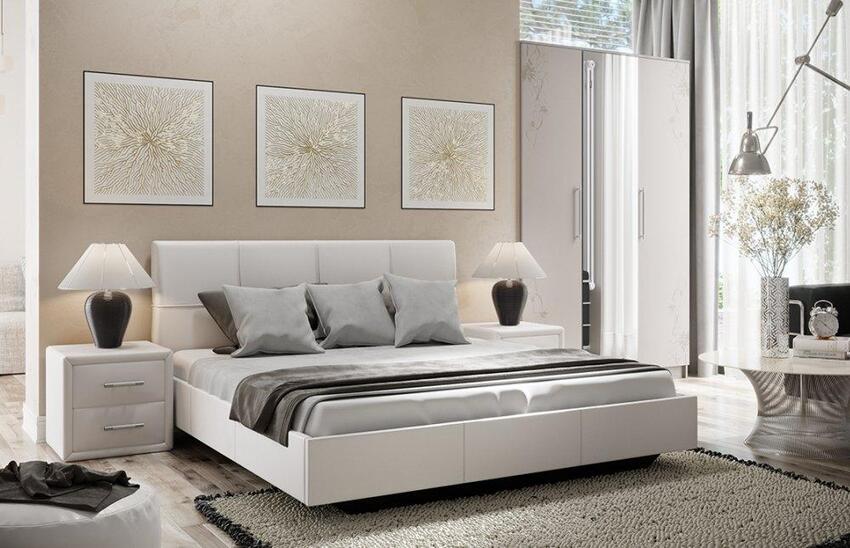 - Двуспальная кровать. Диапазон ширины ложа составляет 160 – 250 см. Для небольшой комнаты предпочтительней всего остановить выбор на спальной мебели с размером матраса до 180 см. Для комфортного сна вдвоем этого достаточно, а сэкономленному участку пространства можно найти более полезное применение.