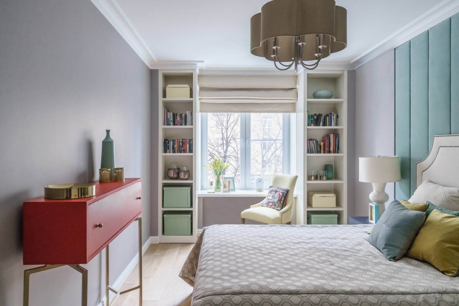 Если, по вашему мнению, дизайн скучноват, «разбавьте» его несколькими яркими акцентами – пледом, картиной или вазой.