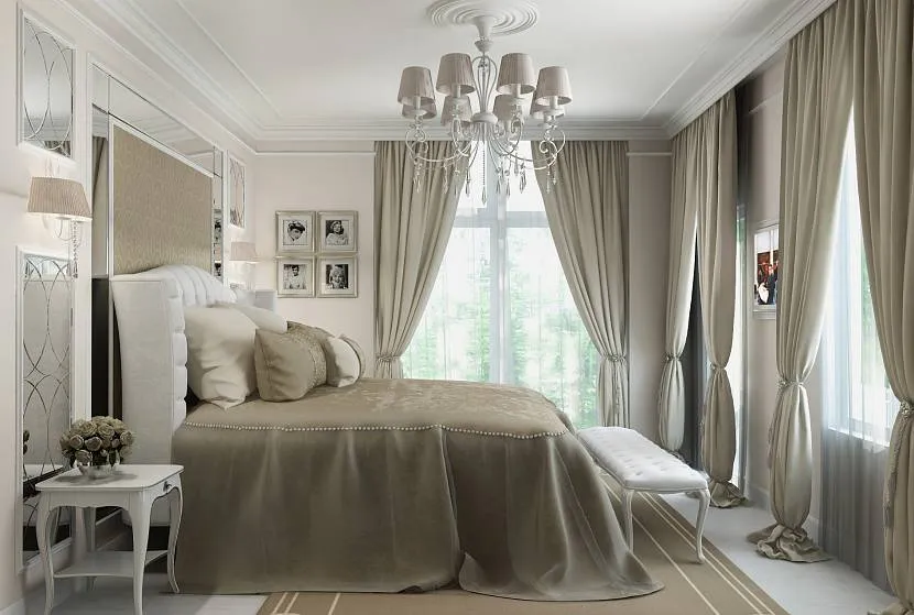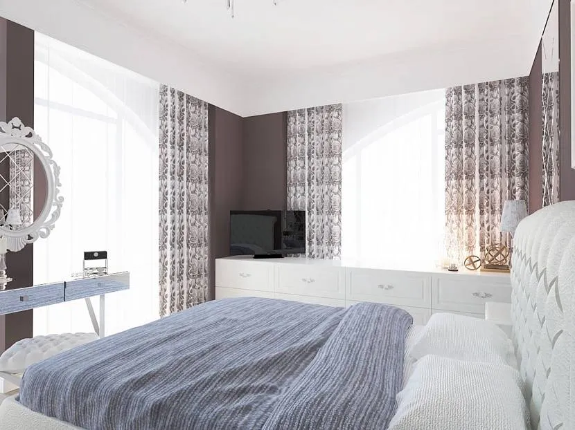 Интерьер спальни с двумя окнами предполагает ряд преимуществ: