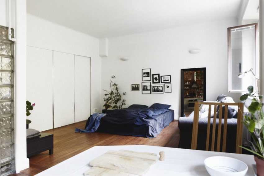 Перед тем как обставить спальню-гостиную в однокомнатной квартире, мысленно разбейте ее на зоны. Их должно быть три – зона сна и приема гостей, зона гардероба и рабочее место.