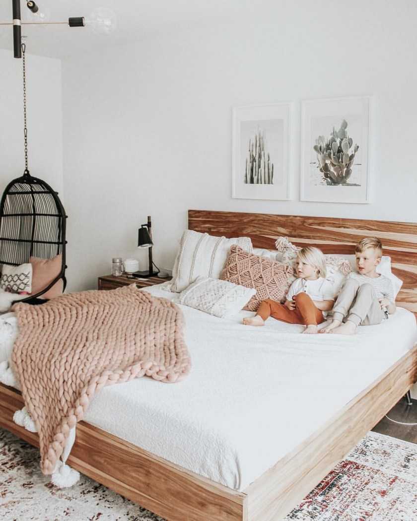 Пледы, покрывала и декоративные подушки украсят главную героиню комнаты — кровать. Разместите 3-5 дополнительных ярких подушек в изголовье, накройте постель покрывалом чуть больше размера матраса, а сверху накиньте вязаный плед — уют гарантирован!