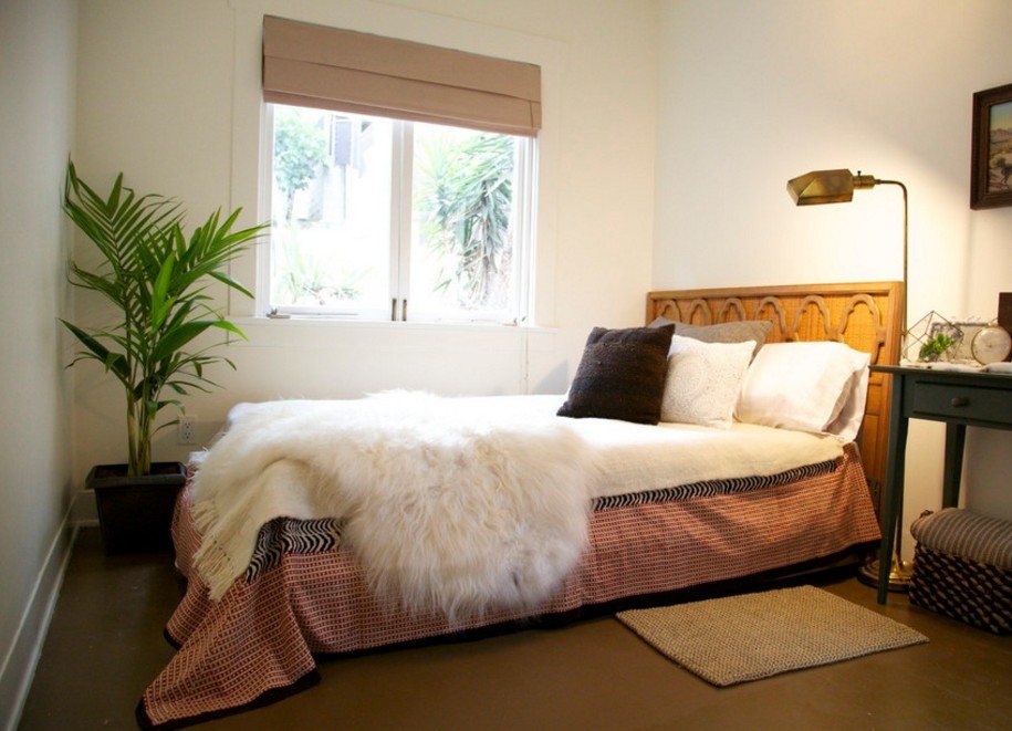 - Руководствуйтесь минималистическими идеями в оформлении комнаты: чем меньше цветов и элементов декора, тем более пустой выглядит спальня.