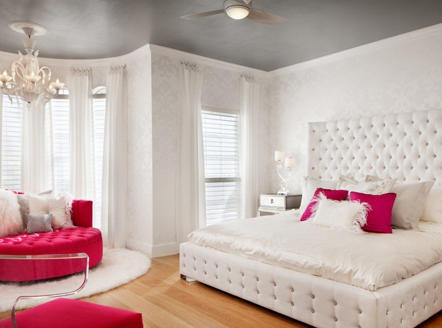 Чтобы такая комната не воспринималась слишком скучной и простой, необходимо разбавить ее яркими элементами, среди которых могут быть шторы, покрывала и подушки. Мебель рекомендуется выбирать с округлыми и мягкими формами. Не стоит выбирать кровать в стиле хай-тек, чтобы не нагружать комнату серьезностью. А вот освещение лучше сделать комбинированным.