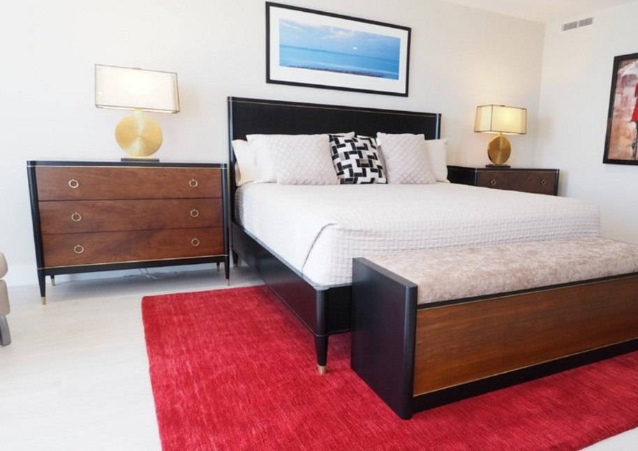 Ведь гораздо приятнее наступить босыми ногами на мягкий и приятный ворс, чем на паркет или ламинат, даже если он оснащен подогревом. Запомните, для спальни подойдет ковер однотонного цвета или с небольшим количеством геометрических рисунков и линий.