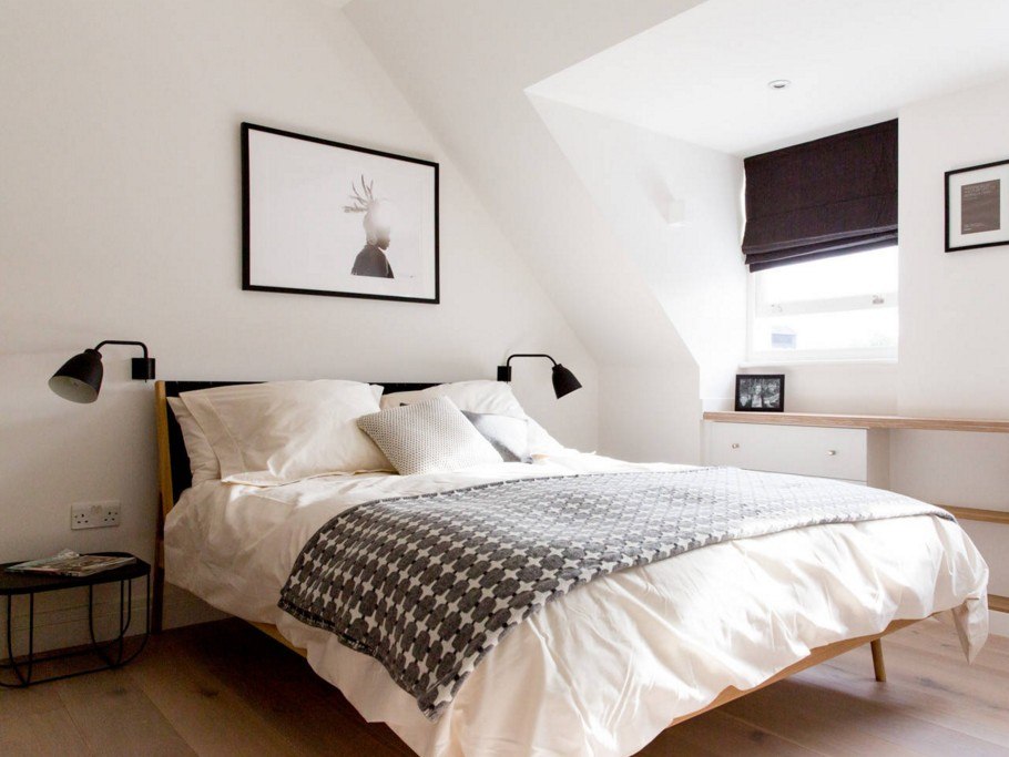 В маленькой минималистичной спальне лучше исключить лишнюю мебель