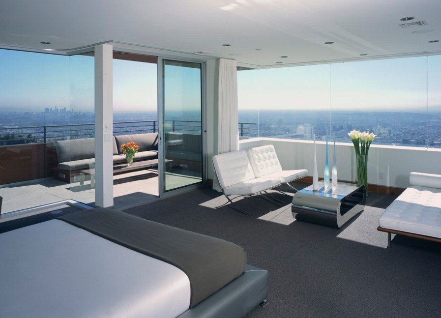 Если речь идет о интерьере спальне в современном стиле, которая расположена в хрущевке, то для нее отлично подойдет стиль хай-тек и минимализм. Помещение, которое имеет площадь 8-12 кв.м, ограничено по выбору различных аксессуаров и мебели. В такой спальне можно разместить кровать, две тумбочки и зеркальный шкаф-купе, имеющий пластиковые или полупрозрачные фасады, которые помогут визуально увеличить комнату.