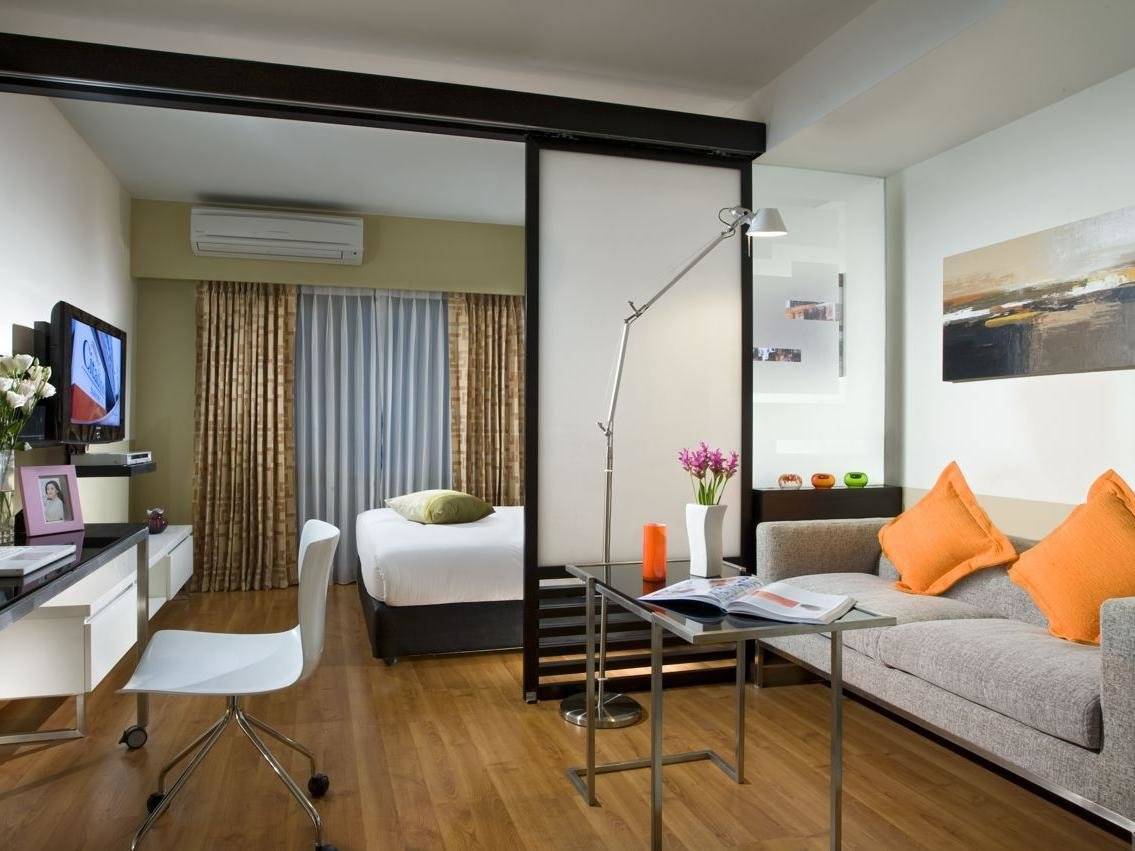 мобильные перегородки, ширмы и занавески подойдут тогда, когда в узкой длинной комнате необходимо выделить место для сна и приема гостей, например.