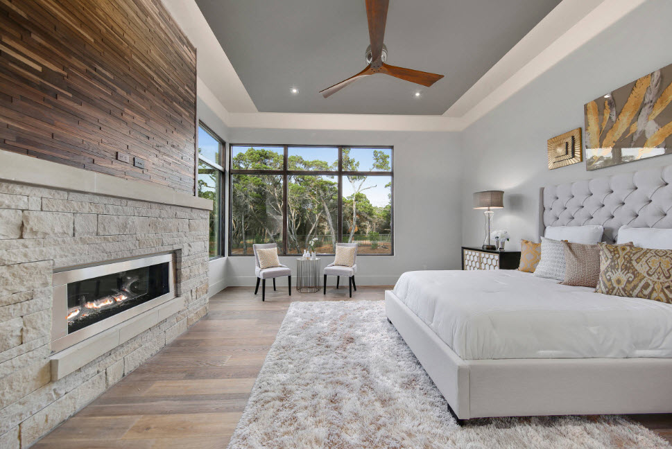 Однако, если у вас немного больше места, то есть имеется открытая планировка, то сможете позволить себе функциональное и визуальное разделение зоны отдыха и сна. В этом помогут всевозможные перегородки и полупрозрачные раздвижные двери. Они отделят два сектора друг от друга и обеспечат определенную близость. Экран или полка с книгами и безделушками также сделают свое дело. Вы также можете использовать характерные элементы интерьера, такие как ниши, разные уровни или лестницы.
