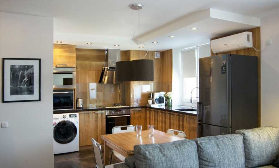 - Снять перегородку. В этом случае можно получить дополнительные квадратные метры, которые можно отдать под импровизированный бар, книжный стеллаж, шкаф для техники.