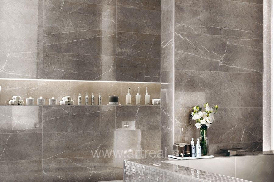 Каменная плитка создает красивый и спокойный фон для дорогих сантехнических изделий и мебели. Они обогащают как минималистские стили, так и элегантные, классические интерьеры.