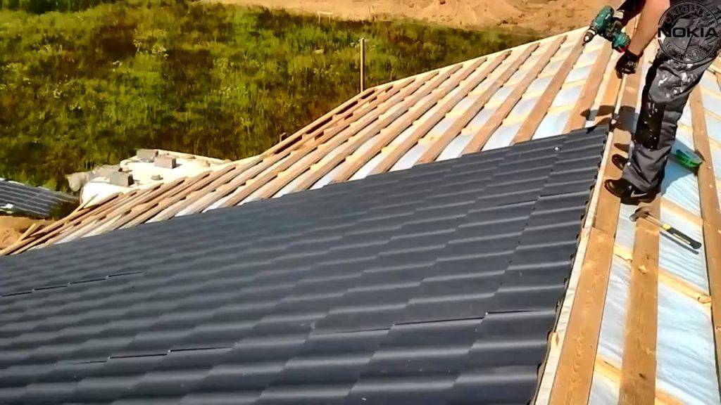 Монтаж металлочерепицы на крыше.
