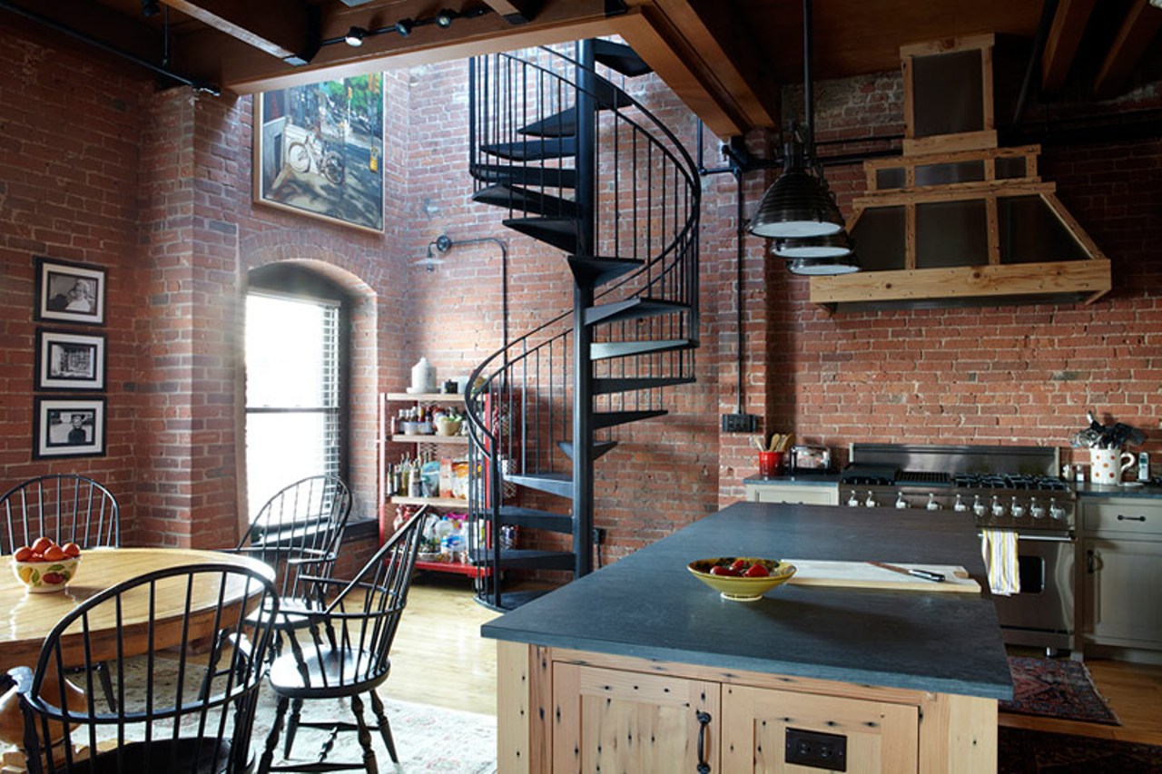 Если площадь кухни в квартире маленькая, элементы стиля лофт придадут ему черты богемного шика и легкой небрежности.