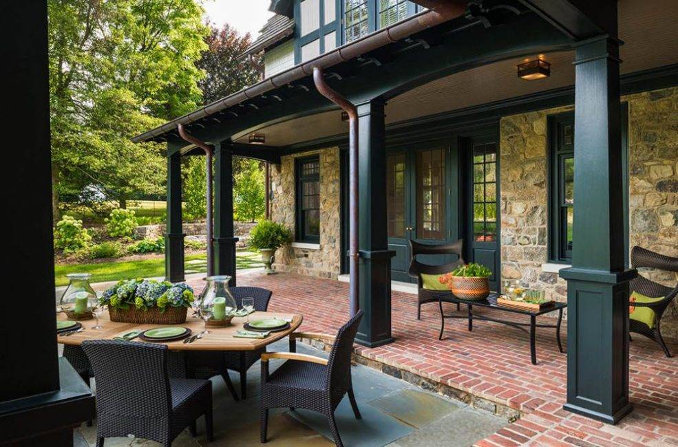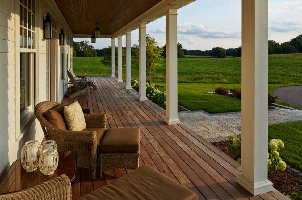 Если в семье маленькие дети, а дом стоит на возвышении, террасу огораживают парапетом, чтобы предотвратить падения и травмы.