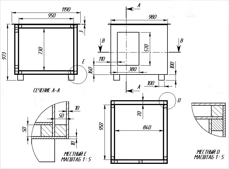 Габариты кошачьего убежища могут быть самыми разными. Главное, чтобы питомец мог перемещаться внутри в полный рост и растянуться во всю длину. Чаще всего уличные домики делают размером 1,5х1,5х0,5 м. Для нескольких особей эти параметры придется увеличить. В качестве примера приводится схема уличного домика с размерами.