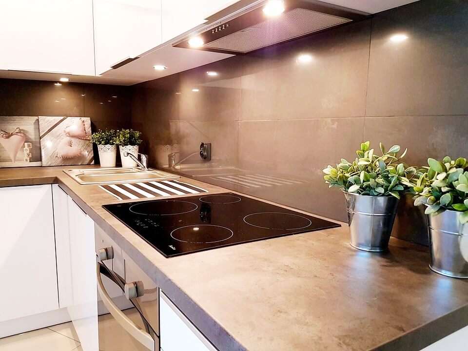 Столешница из натурального камня стоит довольно дорого, то же можно сказать о натуральном дереве и специальном прочном стекле. Попробуйте заменить дорогие материалы более дешевыми аналогами, вы увидите, как уменьшается цена вашей будущей кухни.