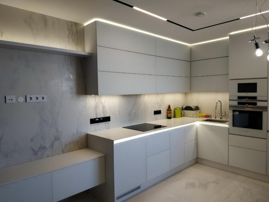 Чтобы кухня выглядела аккуратнее, лучше скрыть зазор под потолком.