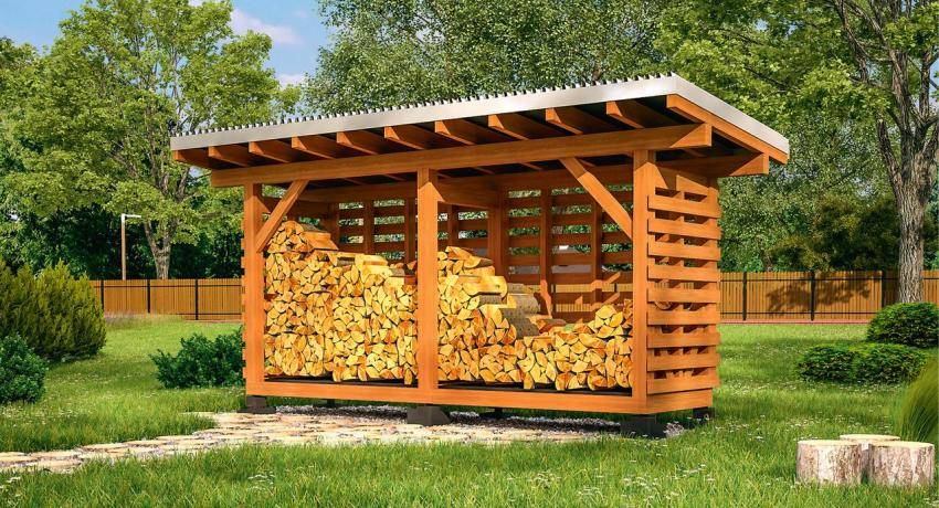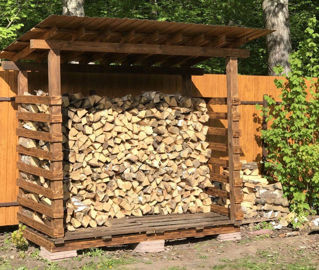 - Если вы планируете хранить большое количество запасов, изготавливайте каркас и основание конструкции исключительно из прочных материалов, с учётом немалой нагрузки поленьев.