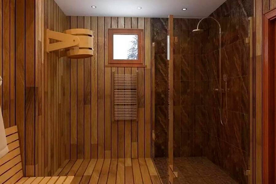 Необходимо учесть — если душевая и парилка находятся в одном общем помещении (так часто делается в небольших домашних банях), использовать полимерные материалы не рекомендуется. В таких случаях лучше обшить отсек вагонкой или тонкими дощечками из липы, ольхи или осины.