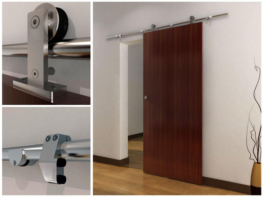Дверным полотном может выступать любая дверь, требуется установить лишь раздвижной механизм