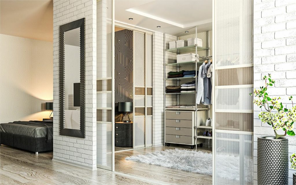 Гардеробная в спальне – это не только габаритный элемент декора, но и эффективная система хранения. Подобное пространство необходимо делать максимально полезным, и сюда же относится выбор двери.