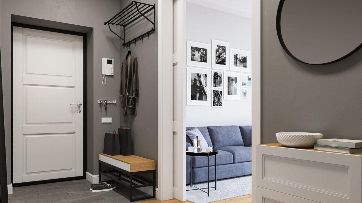 Темные стены внутри воспроизвести сложно. Обилие черного или темно-коричневого на стенах способно зрительно уменьшить свободное пространство, а белая дверь в таком виде будет выглядеть безупречным пятном. Один из этих негативных эффектов можно исправить.