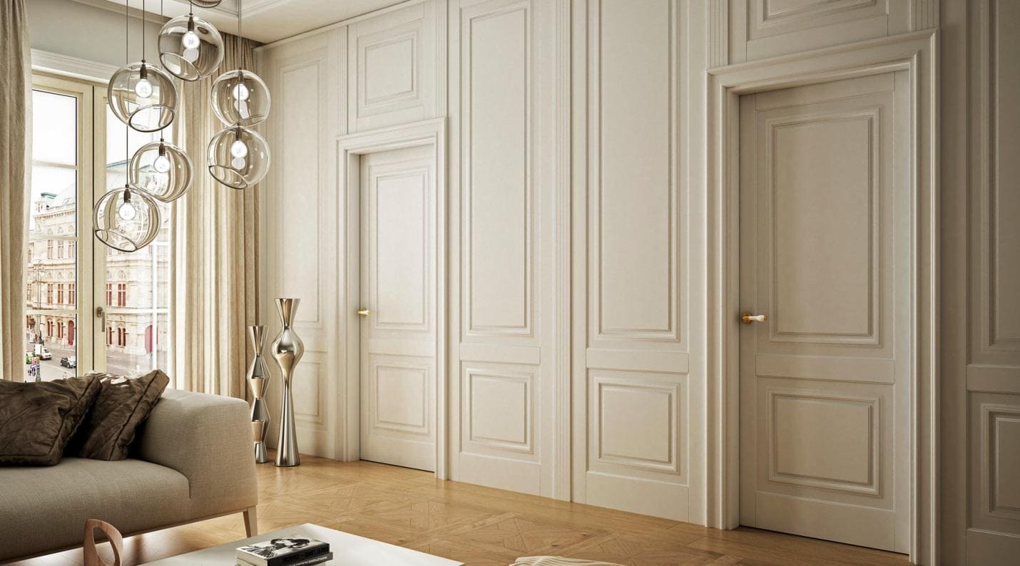 Благодаря эффекту смешивания белые стены покрывают белые двери, придавая комнате практически безграничный и простой вид. Но сочетание белых стен и дверей в один тон может быть слишком белым и насыщенным, и от этого можно отвести взгляд. Поэтому рекомендуем выбирать для одного из этих элементов более мягкие и мягкие оттенки — бело-бежевый, кремовый, кремовый. Вы можете получить белое решение, выбрав теплую температуру освещения.