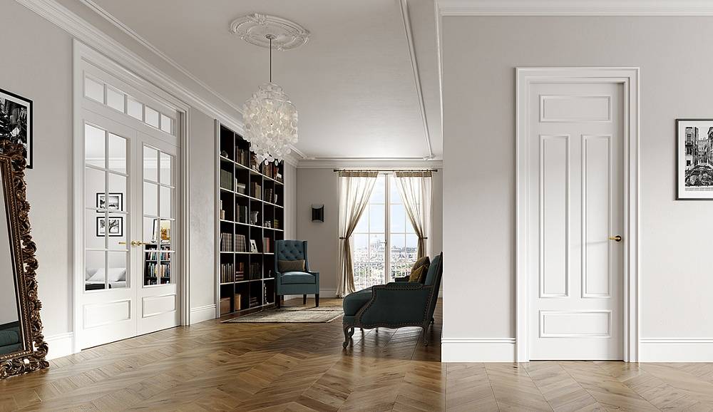 Такой вариант подойдет для тех, кто предпочитает в стиле классику. Двери Волховец созданы без единого зазора или стыка. Каждый день ассортимент дверей неоклассика пополняется все новыми моделями, как в «глухом» исполнении, так и со стеклом. Вариант отделки полотна – шпон ясеня или эмаль, цветовая палитра представлена 9-ю оттенками.