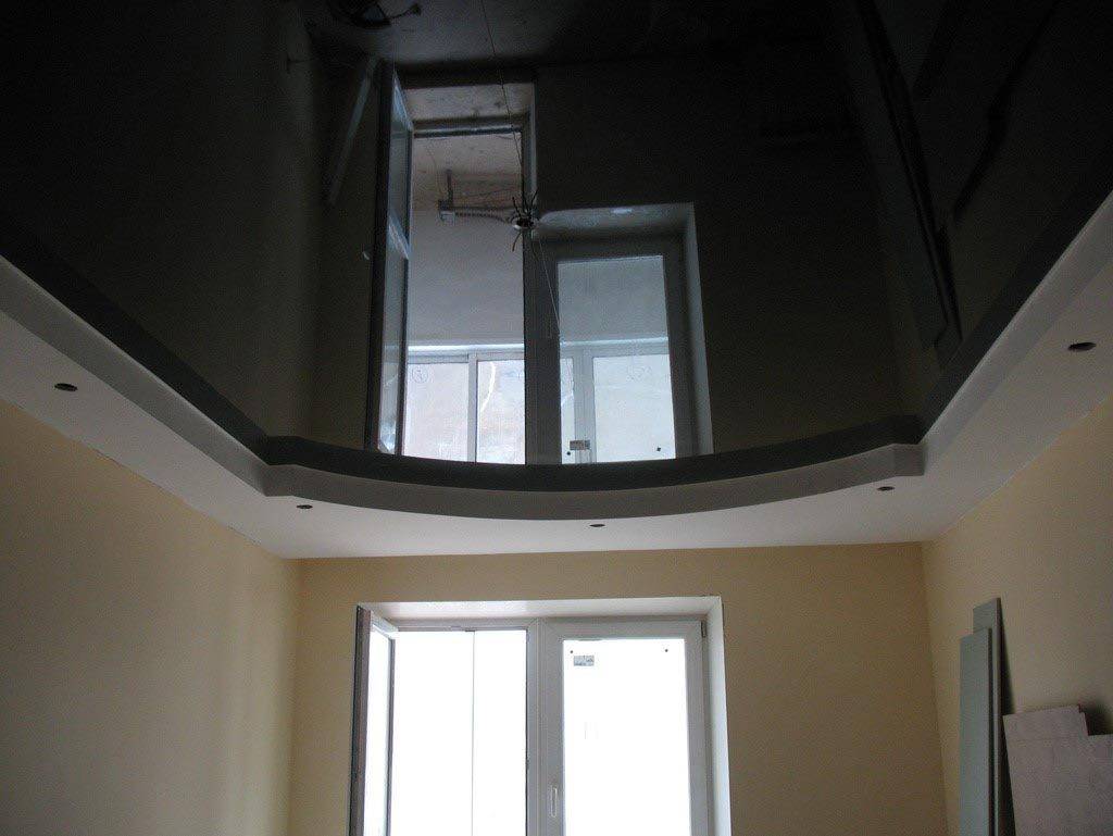 У такой конструкции присутствуют недостатки, главный из которых заключается в том, что потолок сокращает реальную высоту потолка. Минимальное значение составляет 3-5 см. Если вы обладаете низким помещением, компенсировать маленькие размеры можно при помощи зеркальной пленки. Даже изделия черного цвета способны зрительно увеличить поверхность над головой. При комбинировании с гипсокартонными краями вы сможете получить значительное усиление эффекта.