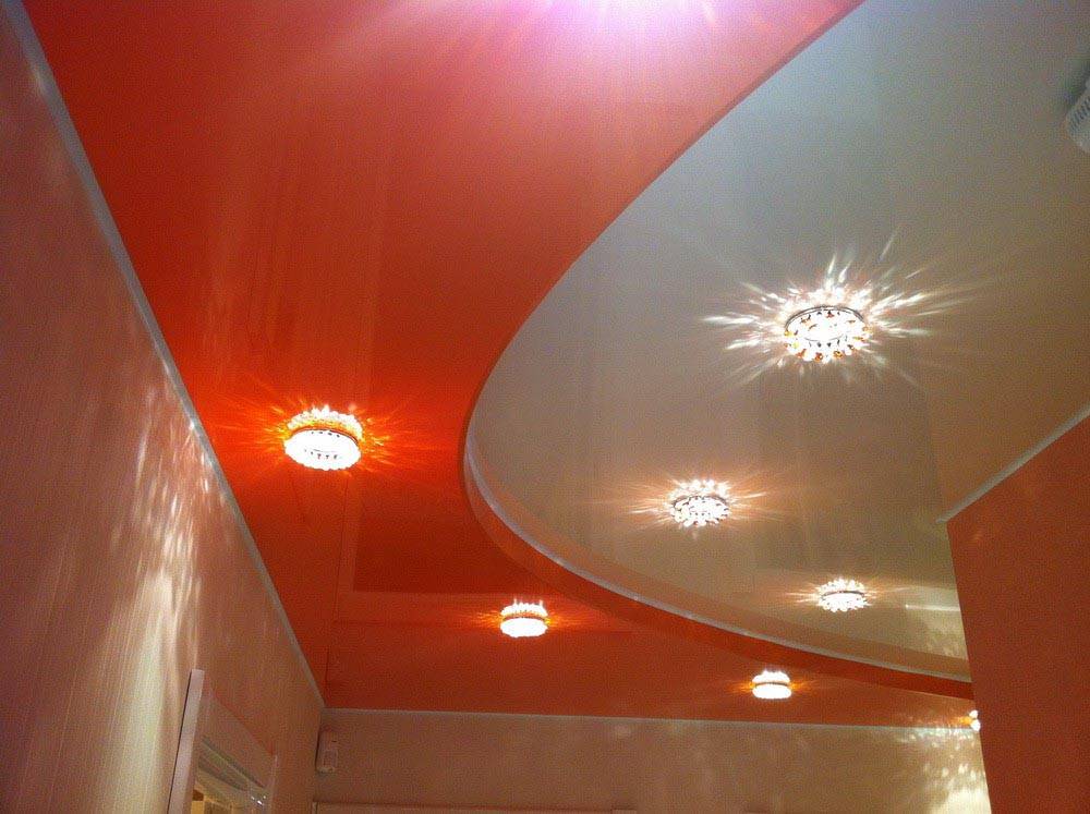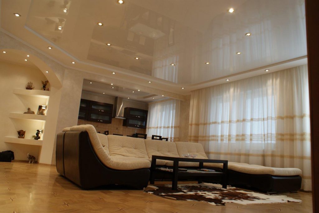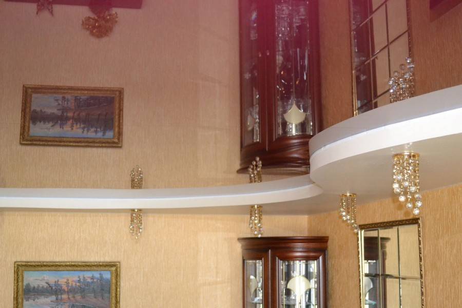 Натяжной двухуровневый потолок предоставляет огромный выбор ассортимента дизайнерских решений, без труда можно найти красивое оформление для любой комнаты (гостиной, спальни, кухни, детской или прихожей) разнообразных размеров и оттенков. С помощью таких конструкций и получается оригинальный и неповторимый дизайн.