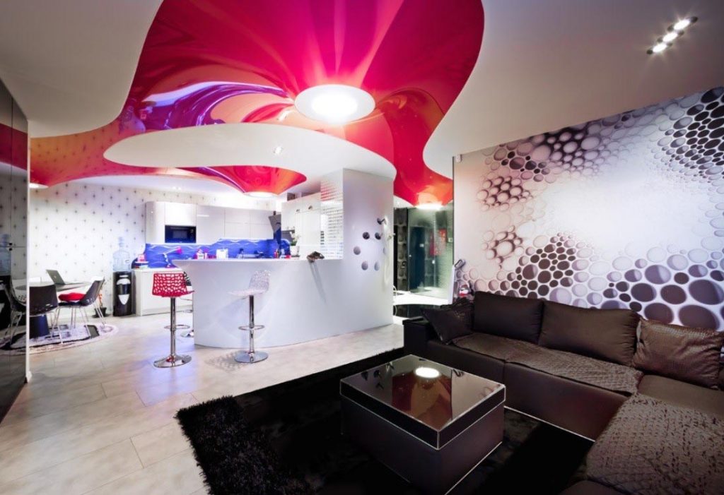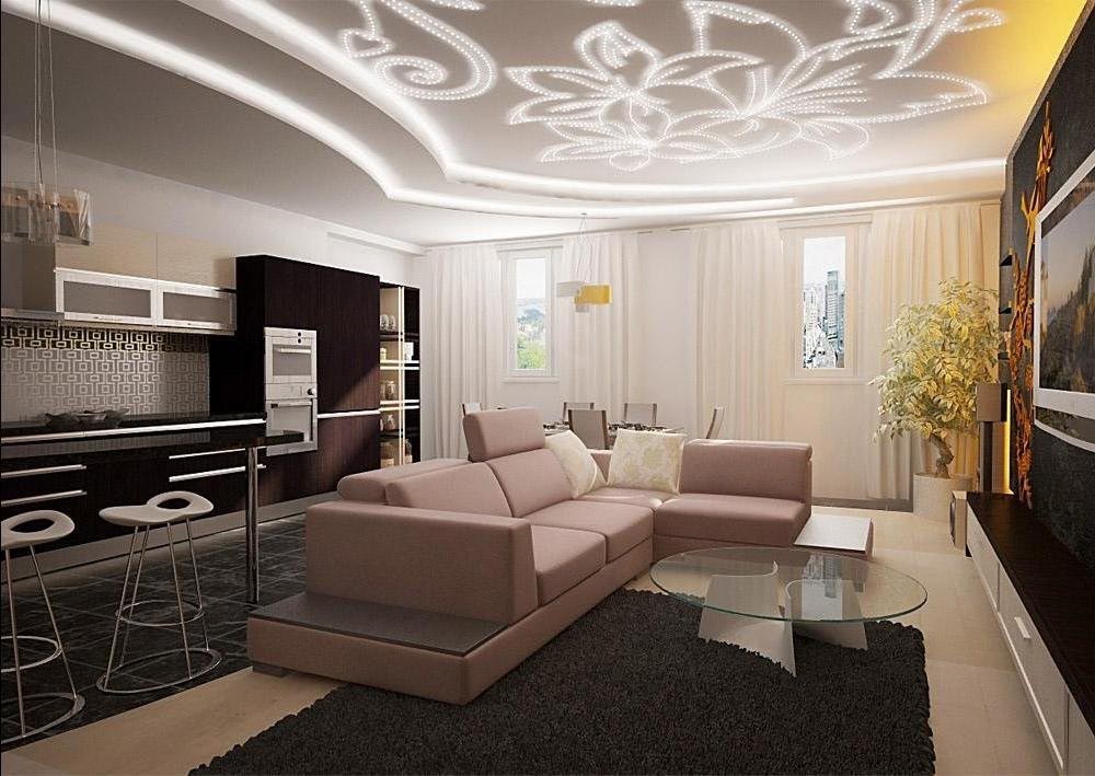 Современные тенденции в интерьерной моде позволяют декорировать малогабаритные квартиры-студии максимально эффектно с помощью двухуровневых потолков. Они позволяют разделить общую площадь на несколько разных зон