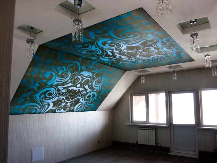 Мансарда в частном доме, как правило, является вызовом дизайнерам, поскольку располагается под крышей и имеет сложные конфигурации стен. Потолок – тоже не исключение, поэтому специалисты советуют применять каркасные сооружения для установки натяжных потолков.