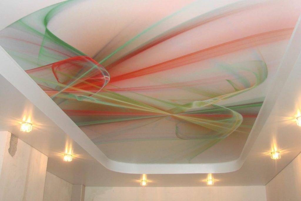 Форма двухуровневых натяжных конструкций бывает квадратная, круглая, треугольная, в виде эллипса. Любая из этих форм выполняется прямыми или изогнутыми линиями, дополняется принтами, фотопечатью, рисунками.