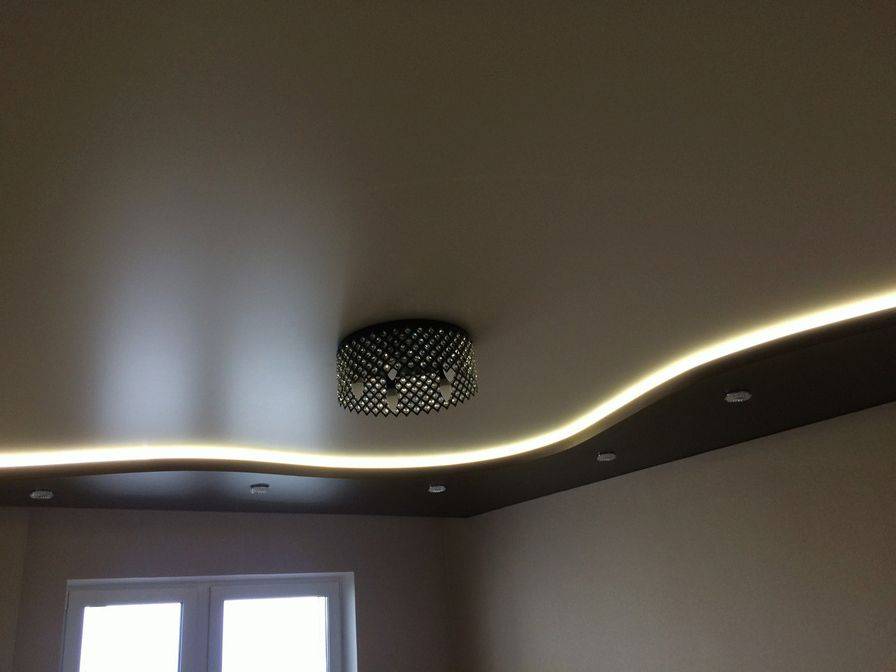 - за полотном можно прятать проводку и монтировать в него осветительные приборы;