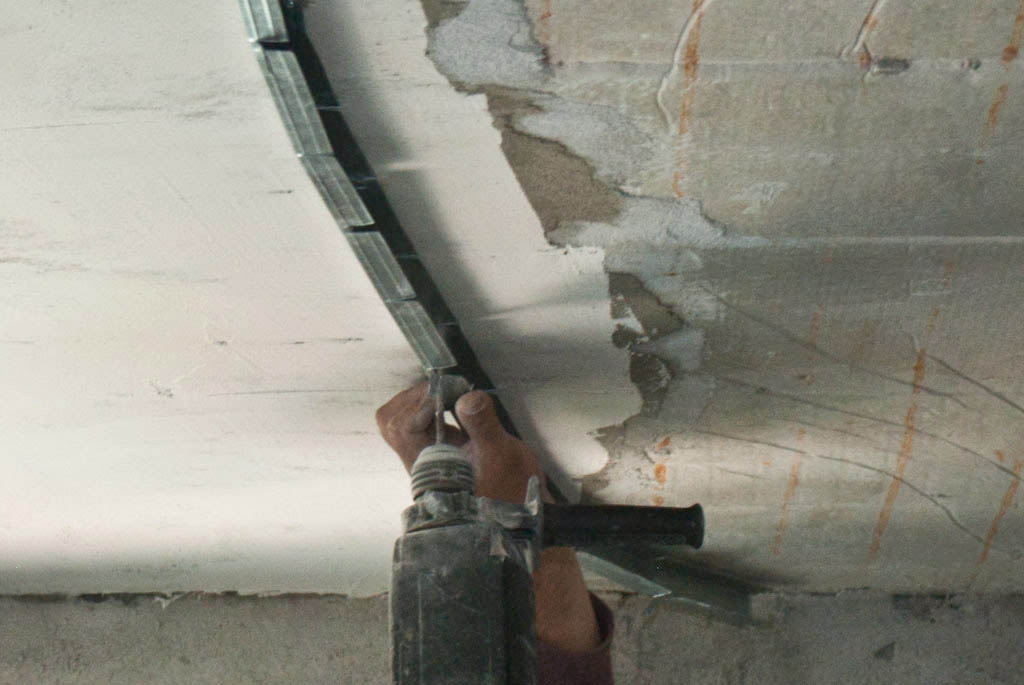 - часто в новых домах потолок это просто голая, бетонная плита, в этом случае, его придется штукатурить, шпаклевать и прятать за подвесной гипсокартонной конструкцией.