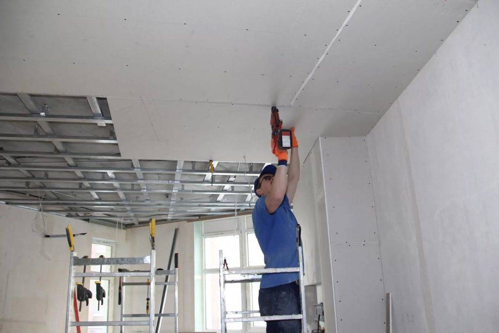 - Устройство потолка из гипсокартона не избавляет от необходимости проведения продолжительных и сложных мокрых работ.