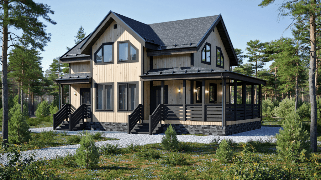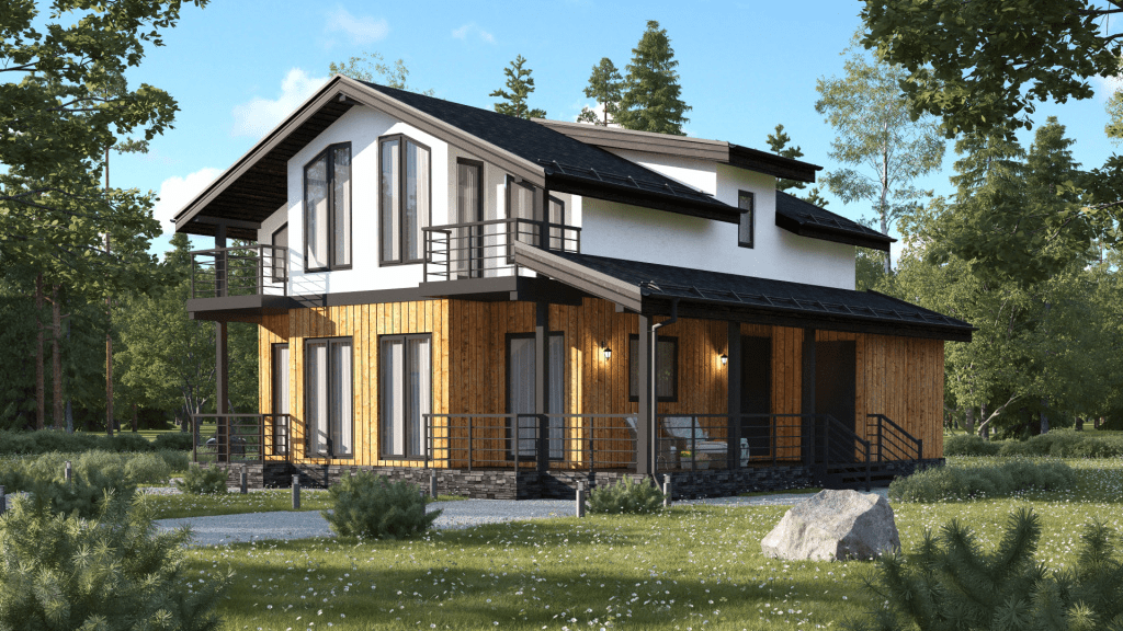 Внешний вид здания формирует целиком его отделка. Каркасный дом — это всего-навсего технология возведение строения. А уж какой у него будет облик — целиком зависит от архитектурных особенностей проекта и выбора отделки.