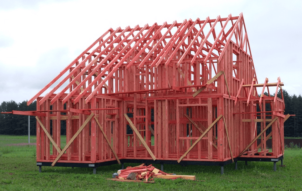Каркасный дом- это строение, в котором основными звеньями являются брусья. Такой каркас позволяет с легкостью удерживать на себе весь вес здания. Материалами служит дерево, металлические профили и другое.