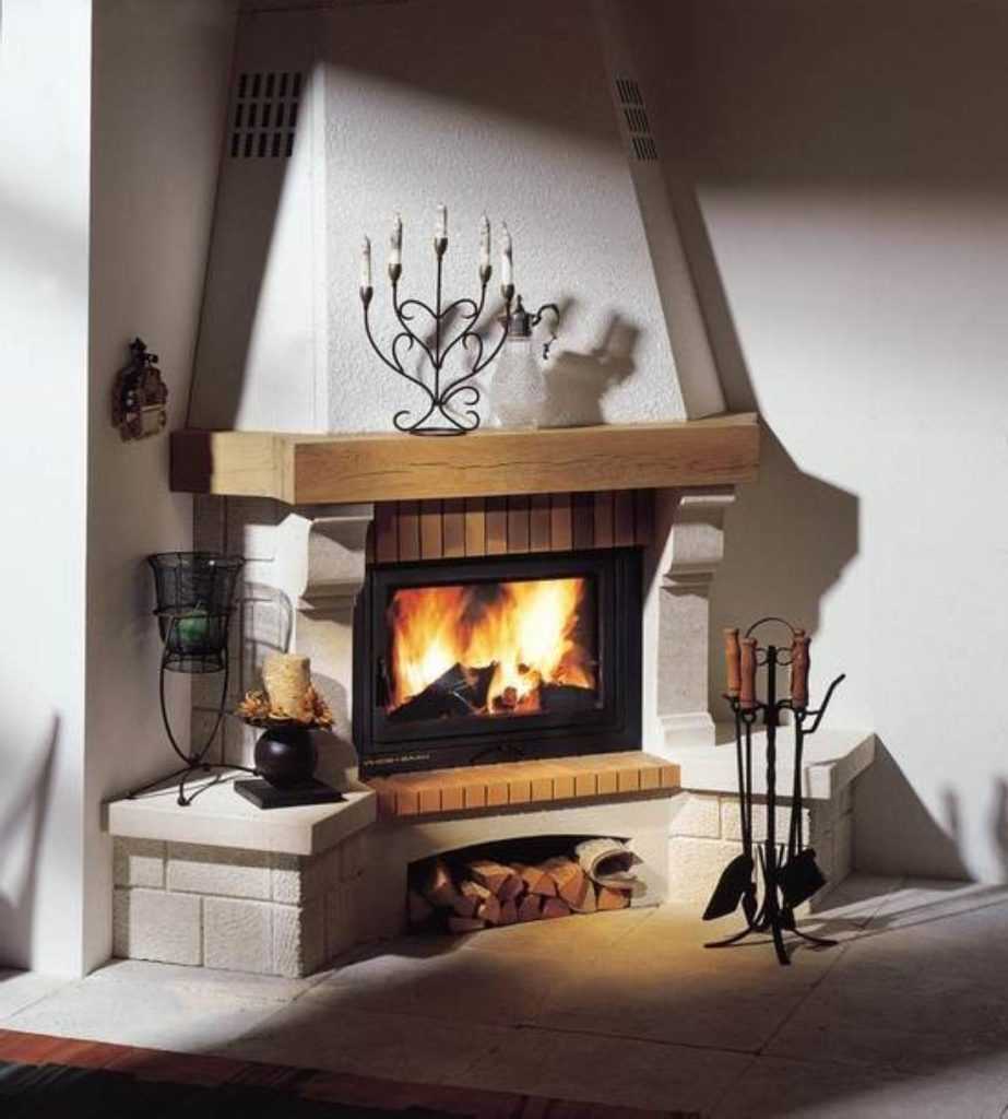 Камины треугольной формы можно топить дровами, компактно уложенными под топкой