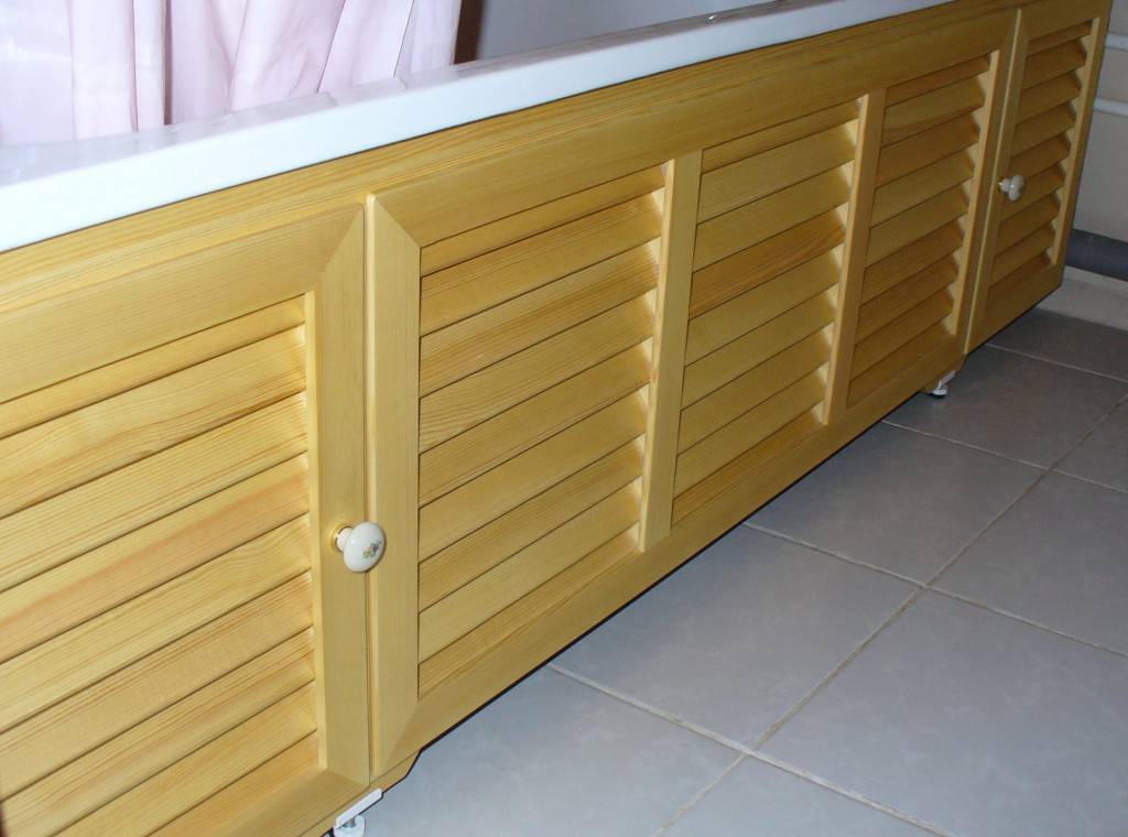 Это чисто декоративное решение и служит лишь для улучшения внешнего вида. Изготавливают их из различных материалов под любые вкусы (например, под мрамор). Установка не представляет особых трудностей, достаточно точно следовать инструкции производителя для быстрого и облегченного монтажа. Скрытое пространство там, где низ под ванной, можно также сделать для хранения разнообразных хозяйственных предметов, положив их в люк.