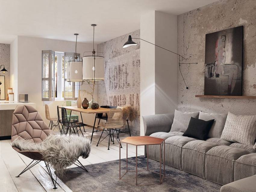 Фактурная штукатурка органично вписывается в любой дизайн (в рамках определенной стилистики, конечно). Благодаря ассортименту оттенков и фактур можно найти оптимальный вариант.