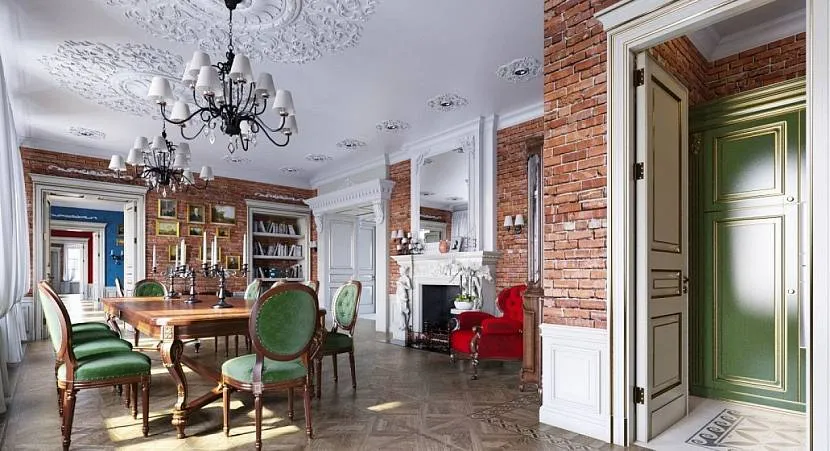 Потолок с лепниной в интерьере лофтИсточник fi.pinterest.com