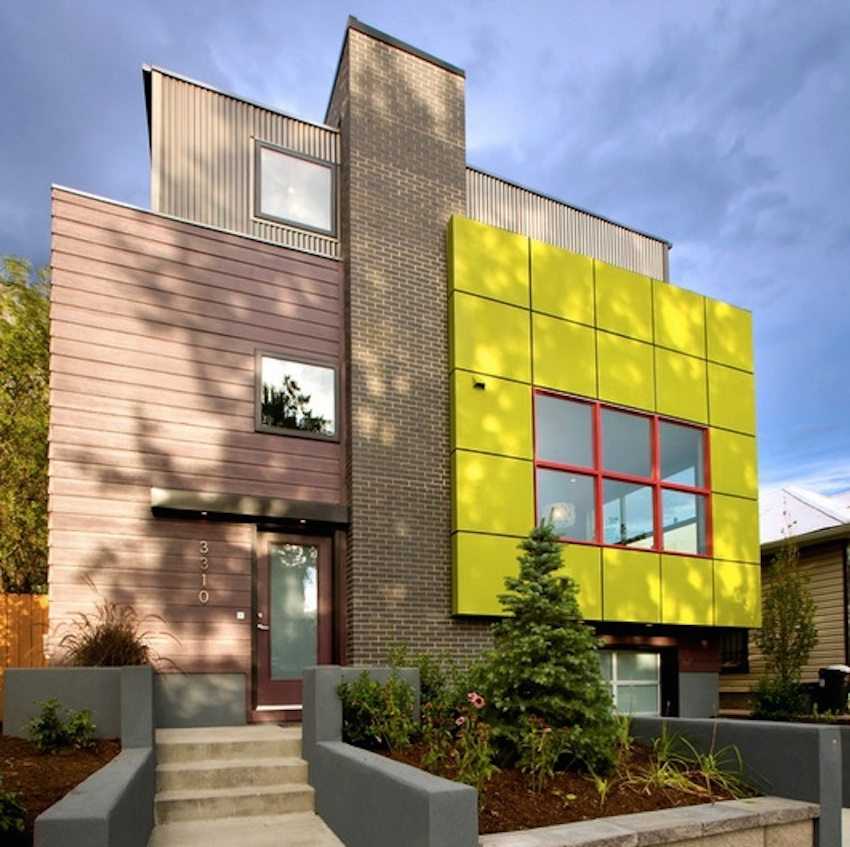 →Следующий вид декоративной отделки – металлические фасадные панели с полимерным покрытием. В их основе лежит оцинкованная сталь или алюминий. Сверху металл покрывается полимерами. Это могут быть пурал, полиэстр и другие. Одним словом, покрытие здесь такое же, как на металлочерепице или на других кровельных металлопрофилях. Недостатком данного материала является низкая теплоизоляция, хотя этот момент легко решается соответствующими утеплителями.