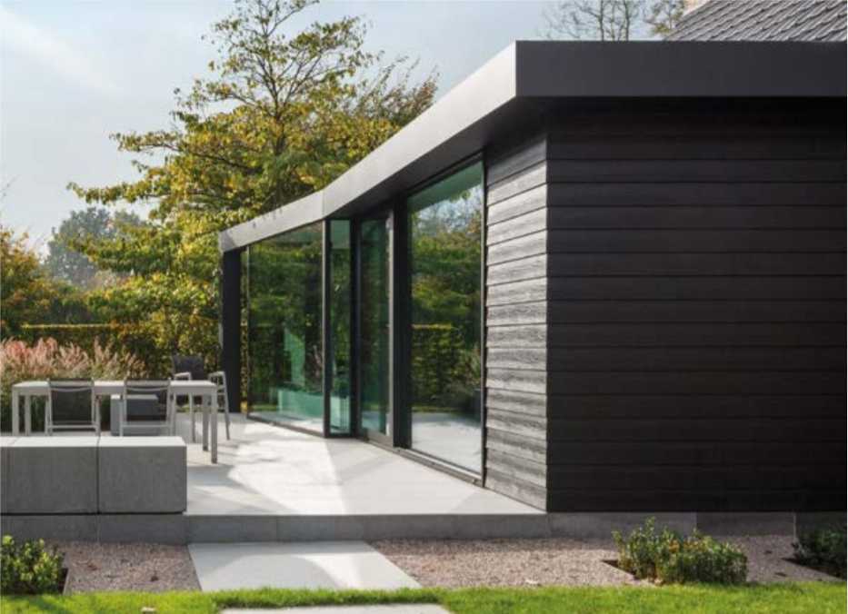 Панели отличаются устойчивостью к ультрафиолету, поэтому длительное время они сохраняют первоначальный цвет. Он остаётся прежним даже после 10 лет эксплуатации сайдинга и не нуждается в пропитке, перекрашивании. Если импонирует кирпичная кладка, используют фиброцементные панели. С ними фасад дома практически неотличим от настоящей кирпичной стены.