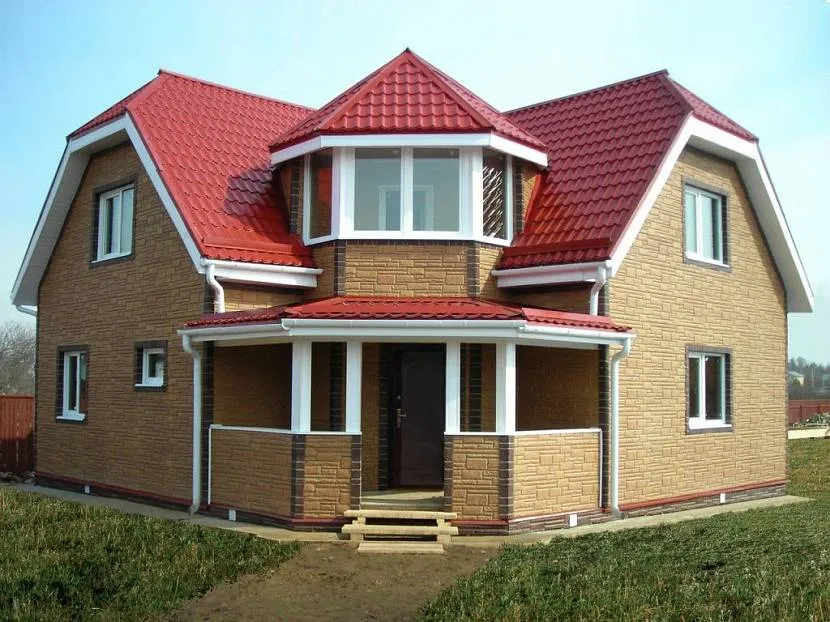 - кровля. Обычно двухскатная для быстрого схода снега. Наиболее используемый материал – металлическая черепица;